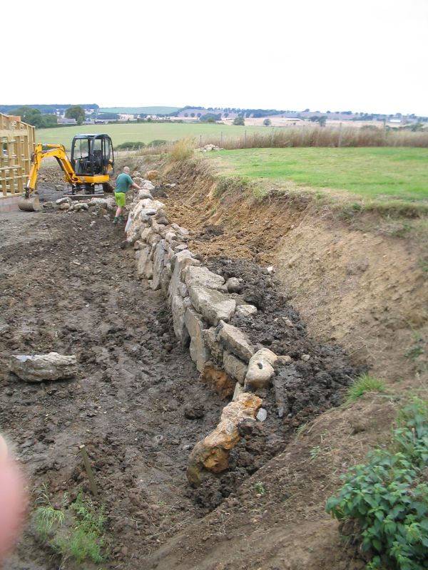 By July 2005 Simon had completed the first side, each section was constructed by hand on the ground and then our friend Clifford would kindly call on his way home from work and help Simon to lift the sections into place.