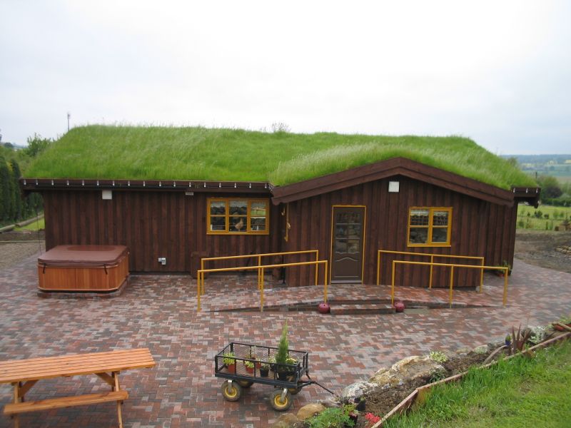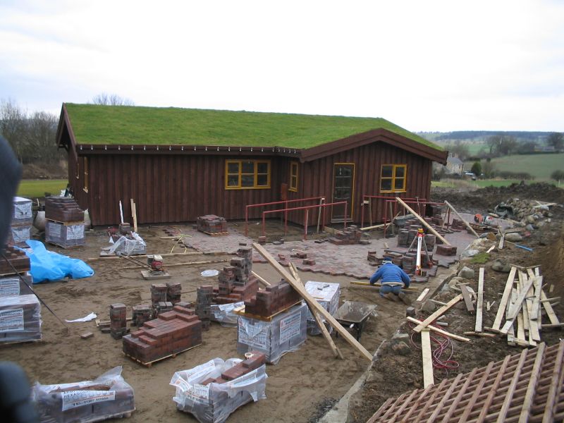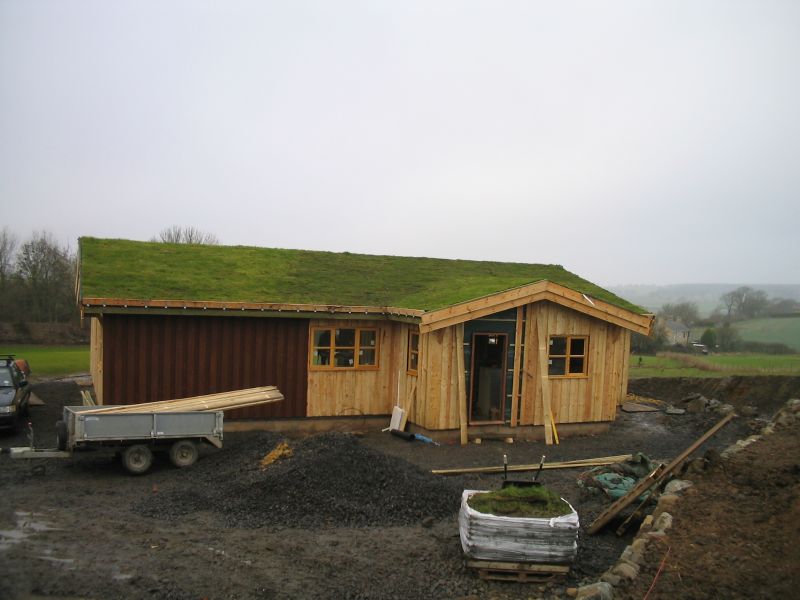 5th November 2005 Hytte continues to have external timbers fixed into place and waterproof membrane applied to roof along with edging boards to stop the turf sliding off!