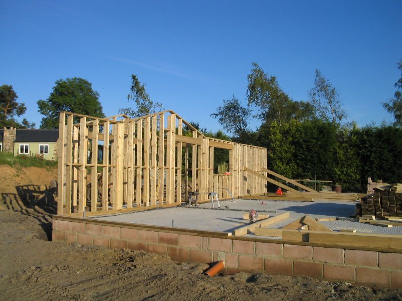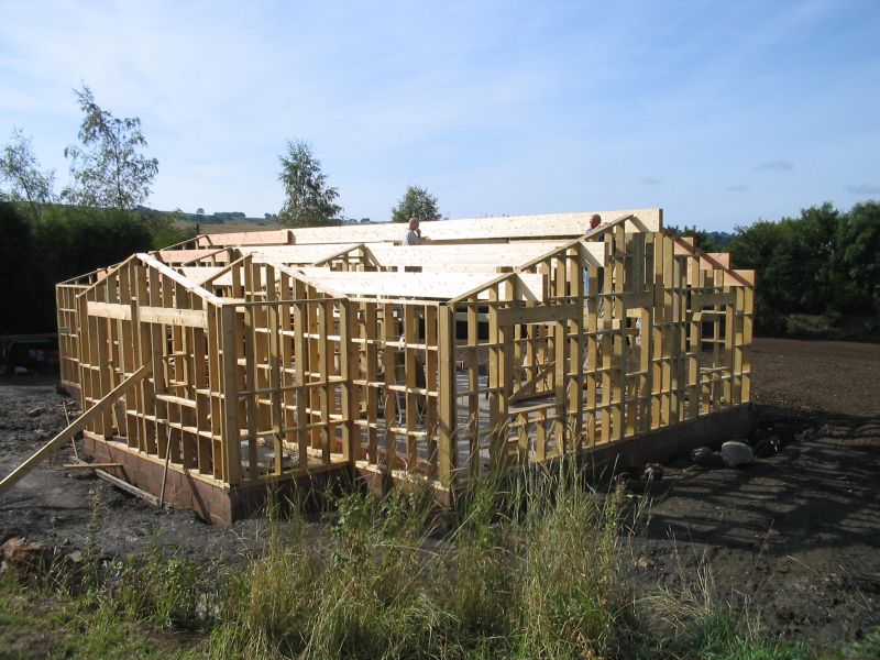 6th September 2005, friend and local farmer Ken used a loadall to delicately lift the beams with Simon and Clifford steering them into place with the aid of ropes, credit to them for a job well done, as none of the beams were at all damaged.
